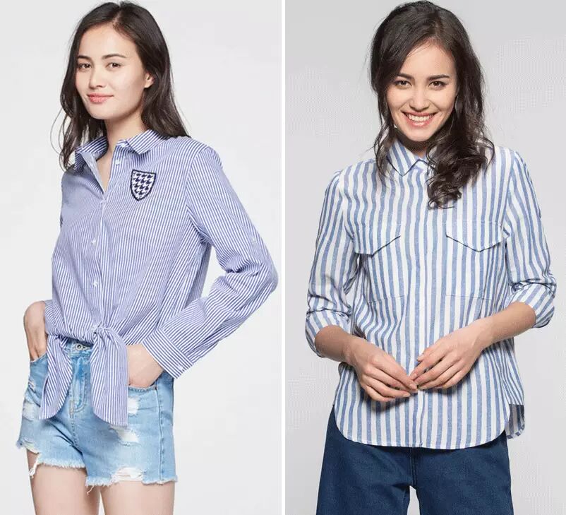 L: 蓝色系带竖条纹衬衫 ¥199 ¥159