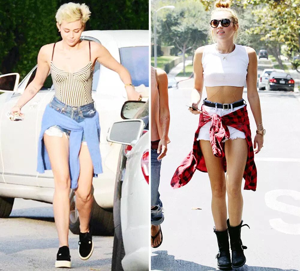 当然也少不了众人皆知的Cool Girl麦莉,即使是穿吊带衫和Crop Top,经过腰间衬衫的中和,少掉好几分性感,多了一丝帅气~(超短发更是酷上加酷耶