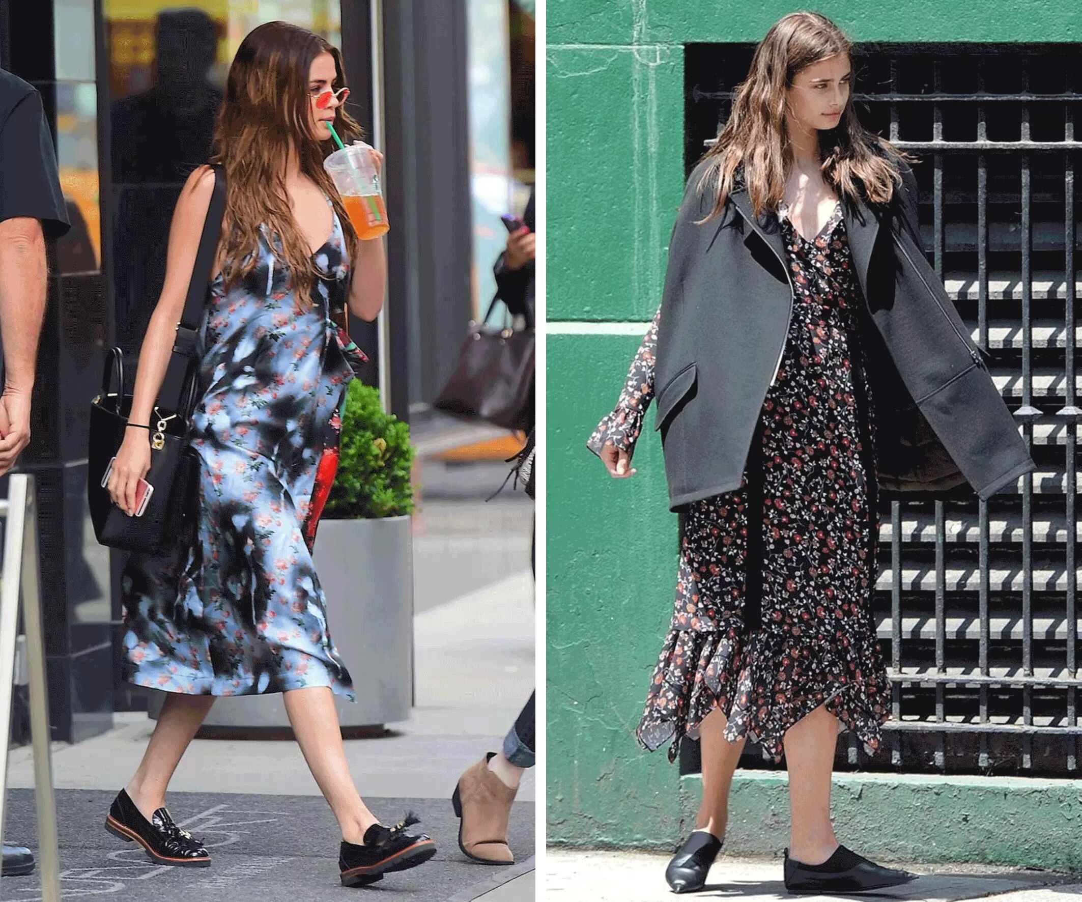 其实印花裙也是可以穿出酷感的!只需要一点小技巧,比如换上一双帅气的踝靴,刚刚还是少女的Taylor Hill就酷起来了。