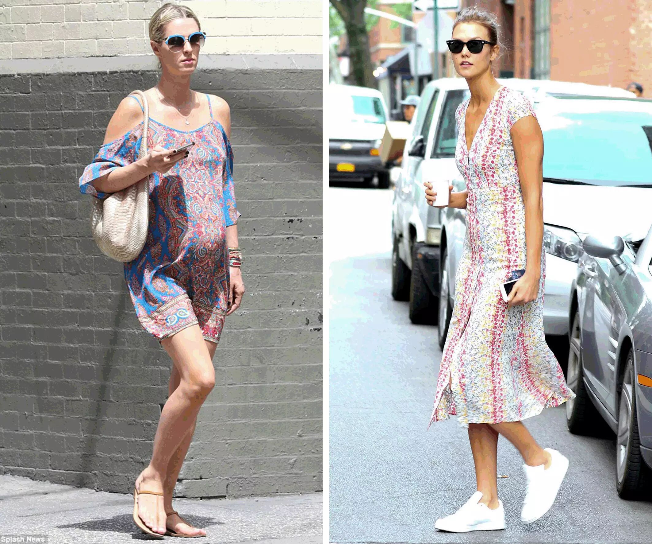 只要遵循以上两点,穿印花裙的孕妇都能酷起来~