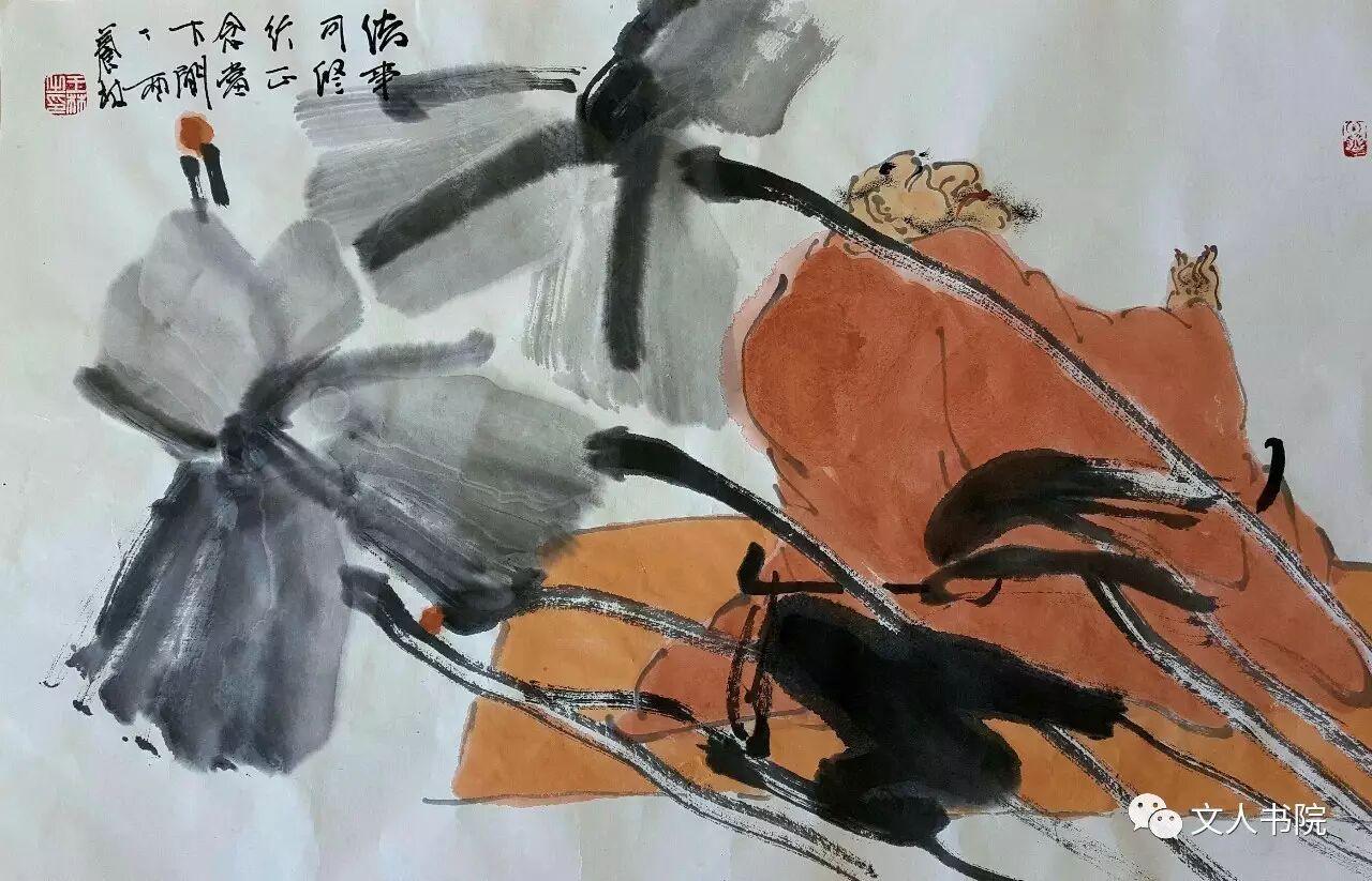 王林在文人画的创作过程中,始终追求化繁为简、言简意赅的心物关照,并以此获得点石成趣的禅境愉悦,其花鸟、人物形象也因之愈发显得博大包容,浑然天成,几近达到返璞归真的状态。