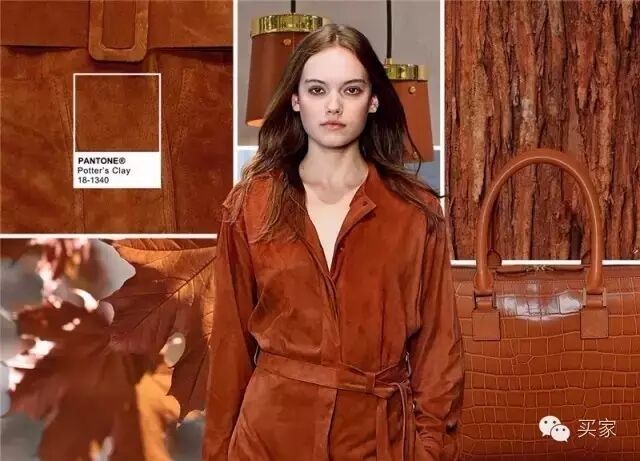 陶土棕作为大地色系的一员,更沾染了几分落叶的橘黄。这样的颜色与复古麂皮材质的流行也脱不开关系,质感特殊,带有一丝厚重的暖意。