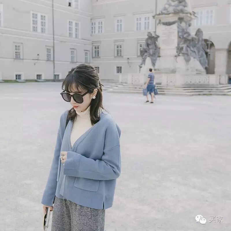空气蓝开衫展现恬静美好,单穿外搭都适宜,值得入手的单品。