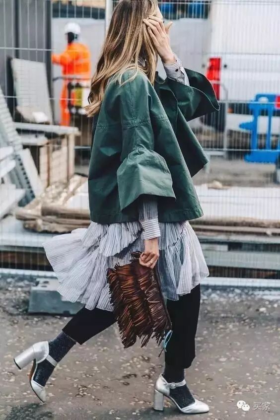 如果觉得大面积的芥末黄不好驾驭,可以着重挑选一件此类颜色的单品,比如包包或鞋子,起到点亮全身Look的作用。