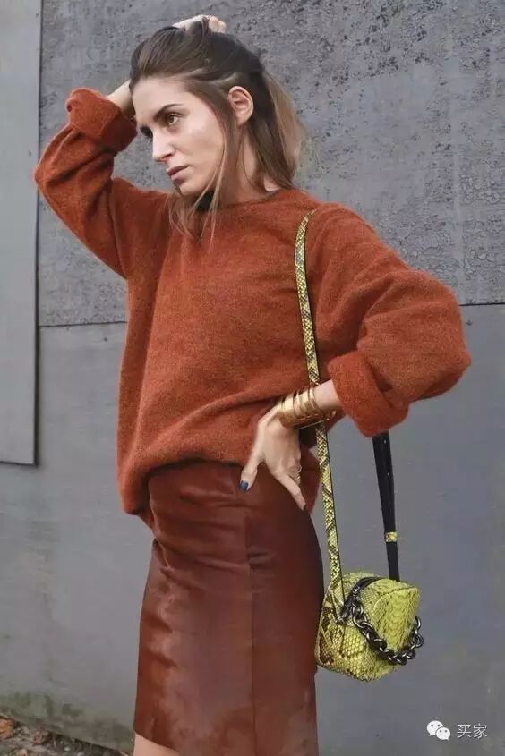 陶土棕所表现出的高级感与柔软的毛衣相结合,高贵又迷人。