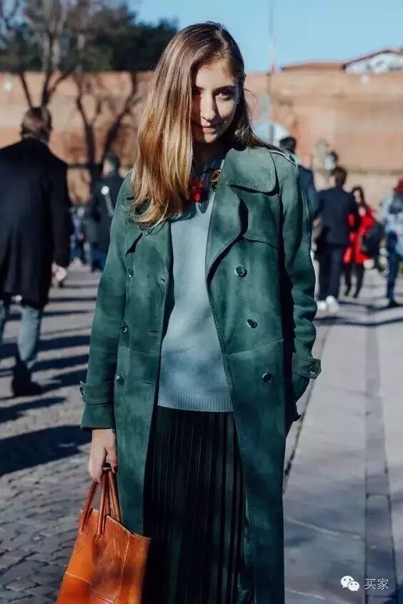 陶土棕应该是大部分时髦女生比较喜爱的颜色吧?厚重的颜色更能和秋冬完美融合,这样一件麂皮材质的长款风衣简直美到爆!