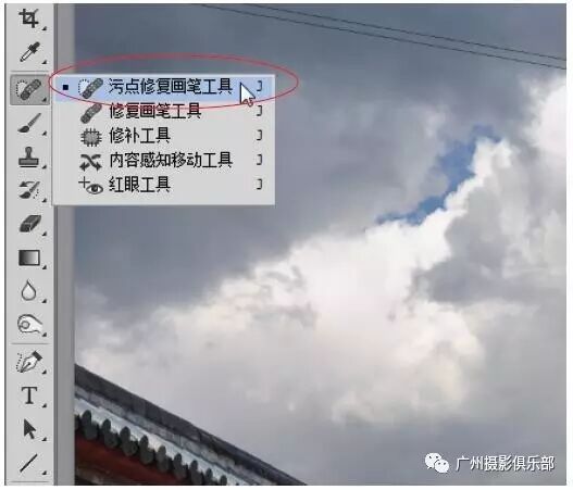 步骤3 选取工具箱中的污点修复画笔工具。
