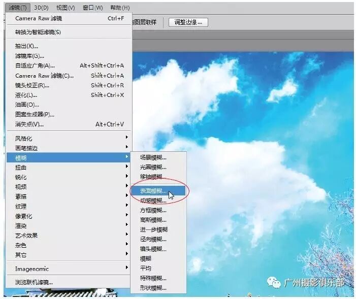 步骤5 单击菜单栏中的“滤镜”|“模糊”|“表面模糊”命令。