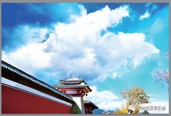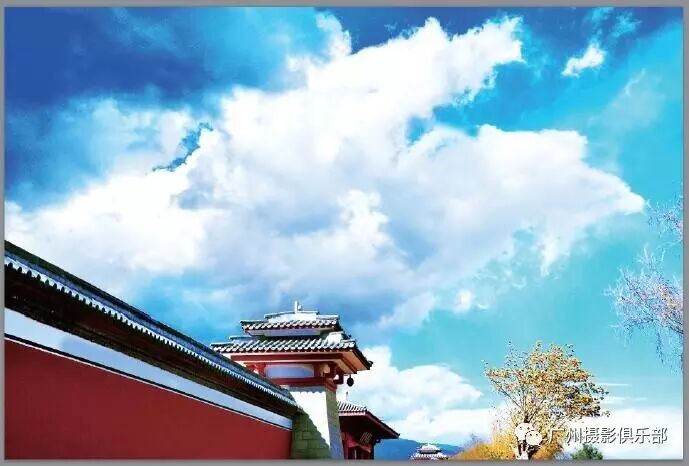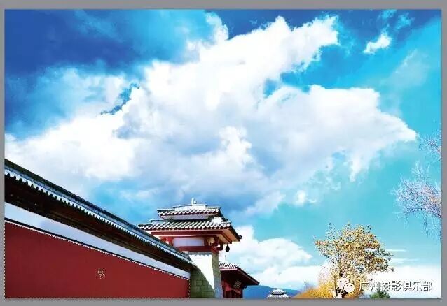 在后期处理时利用Photoshop CC强大的图像修复功能,可去掉画面中的电线等瑕疵,然后经过润饰,让蓝天白云变得更加美丽。本实例最终效果如图所示。