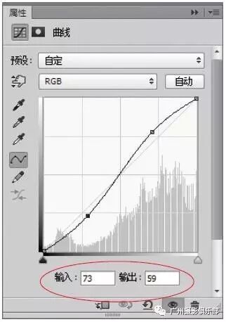 步骤11 在网格上添加第二个曲线点,设置“输入”为73、“输出”为59。