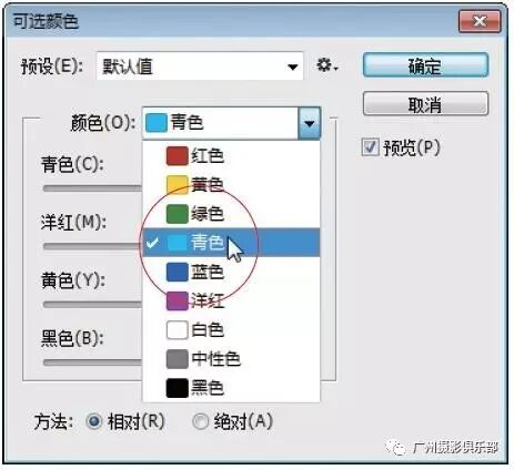 步骤10 单击“图像”|“调整”|“可选颜色”命令,弹出“可选颜色”对话框,在“颜色”列表框中选择“青色”选项。