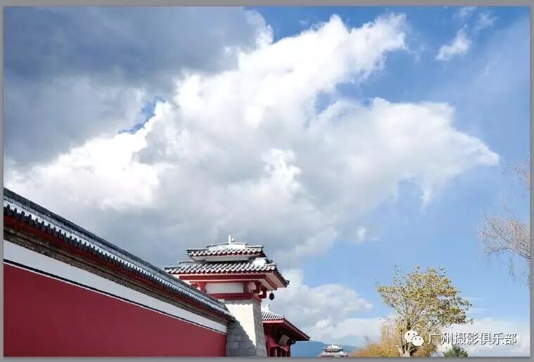 这是拍摄于云南三塔寺门口的一张照片,采用仰拍的方式,亮点是借用围墙构成斜角构图,美中不足的上面有电线,且单调的天空使画面没有表现力。