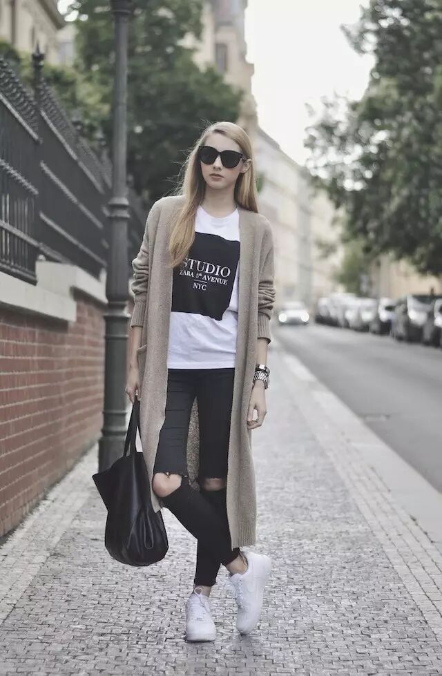针织衫对于这种非乍暖还寒时候最适用。可能不少人觉得它的版型不如风衣硬挺。其实搭配得当,它也是凹造型的一大神器呢。