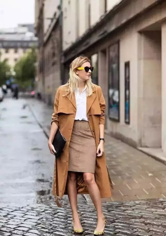 搭配裙装也同样好看,风衣+裙装轻松打造出名媛的装扮。