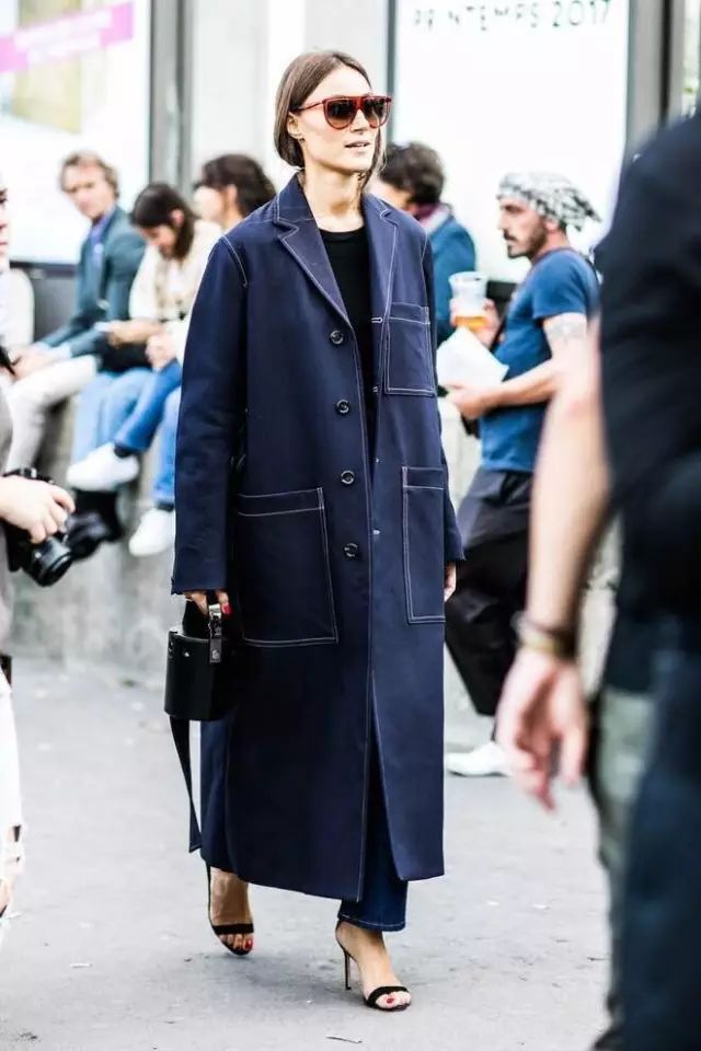 在选择长款外套的时候,和内搭的颜色搭配很重要。同色系搭配更保守、更不容易出错。但内外同色性太过于单调,可以选择有设计感的外套或内搭。