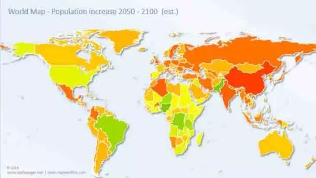 我们再看看30年后,即2050年的情况。此时世界的人口将达到97.3亿。