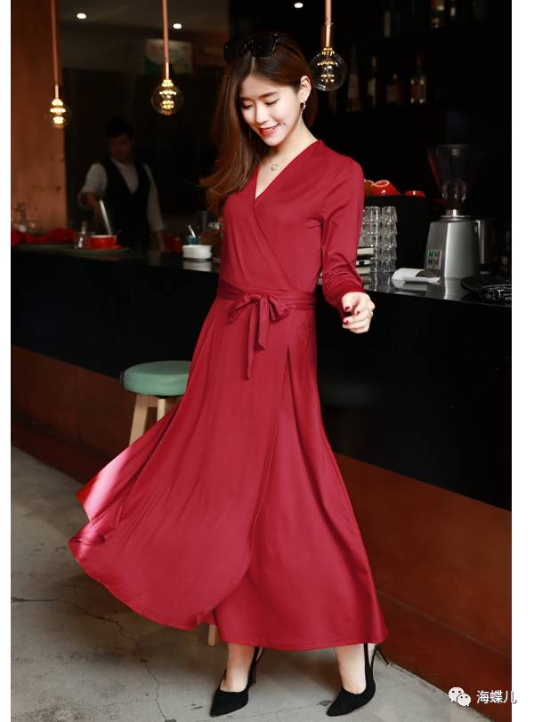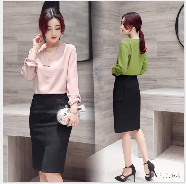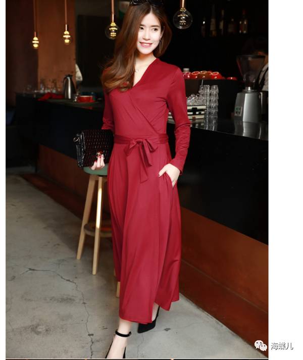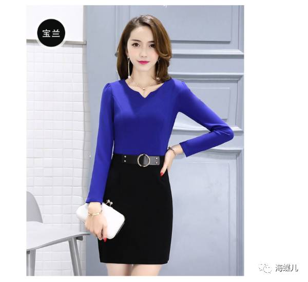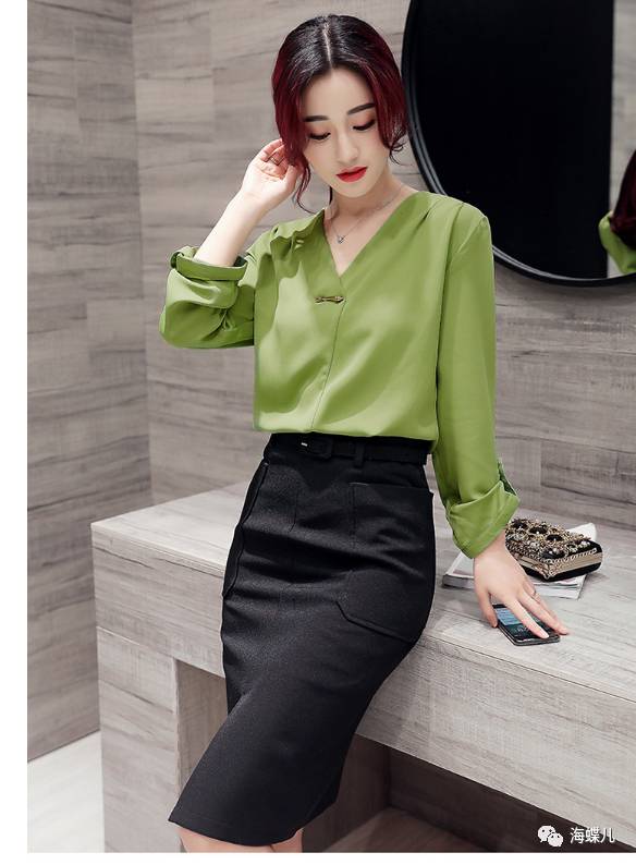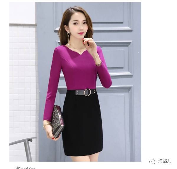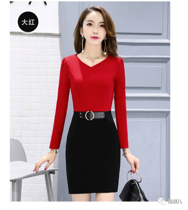 完美春装搭配示范分享NO12:V字领长袖纯色短裙一步裙新连衣裙