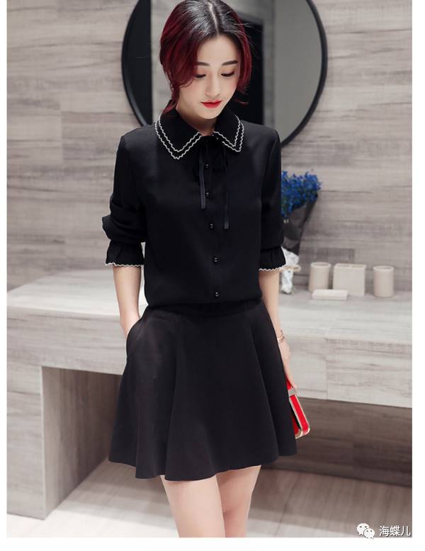 完美春装搭配示范分享NO15:甜美娃娃领长袖衬衣纯色衬衫