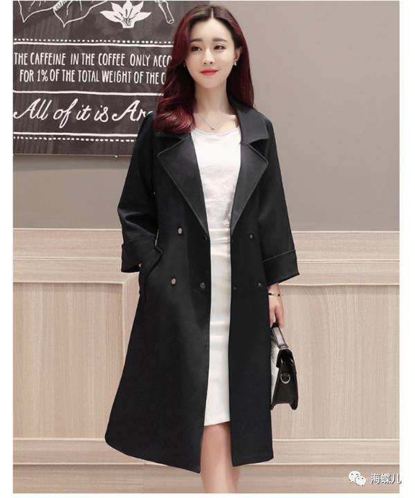 完美春装搭配示范分享NO2:纯色口袋双排扣英伦时尚修身中长款风衣