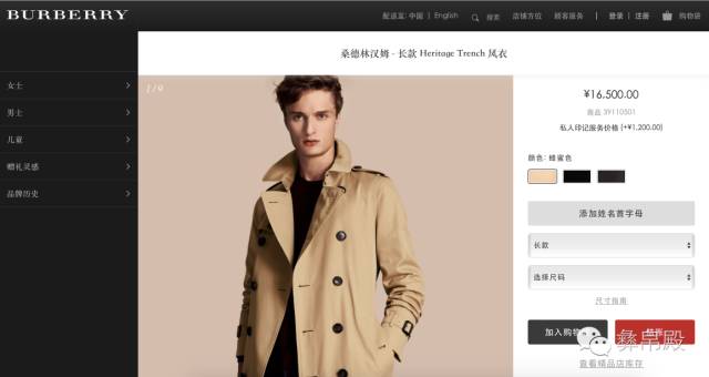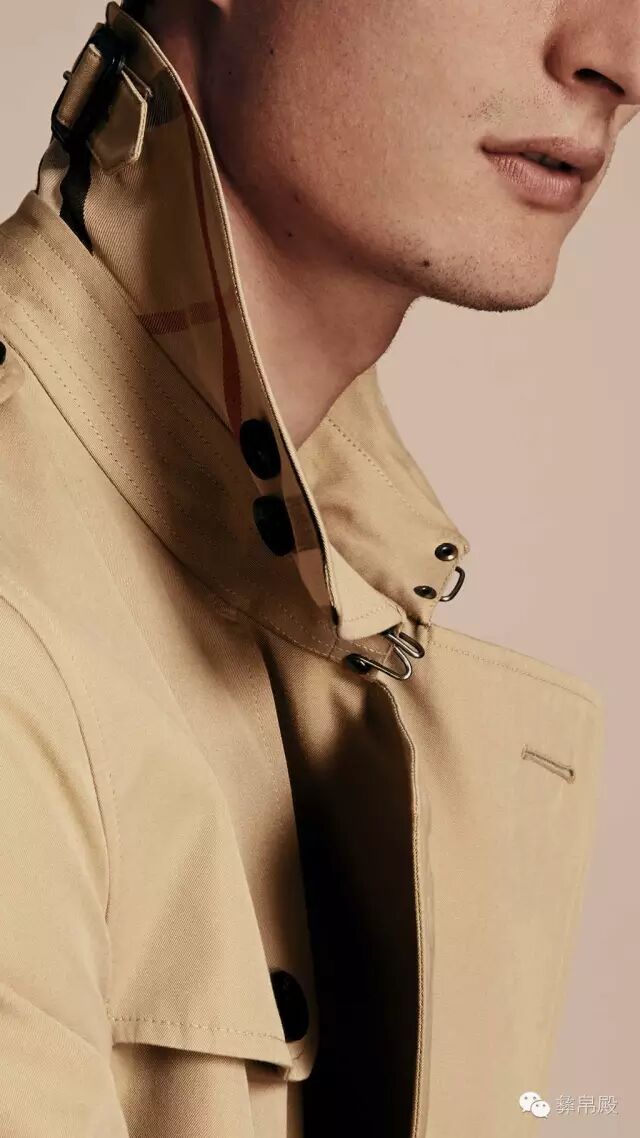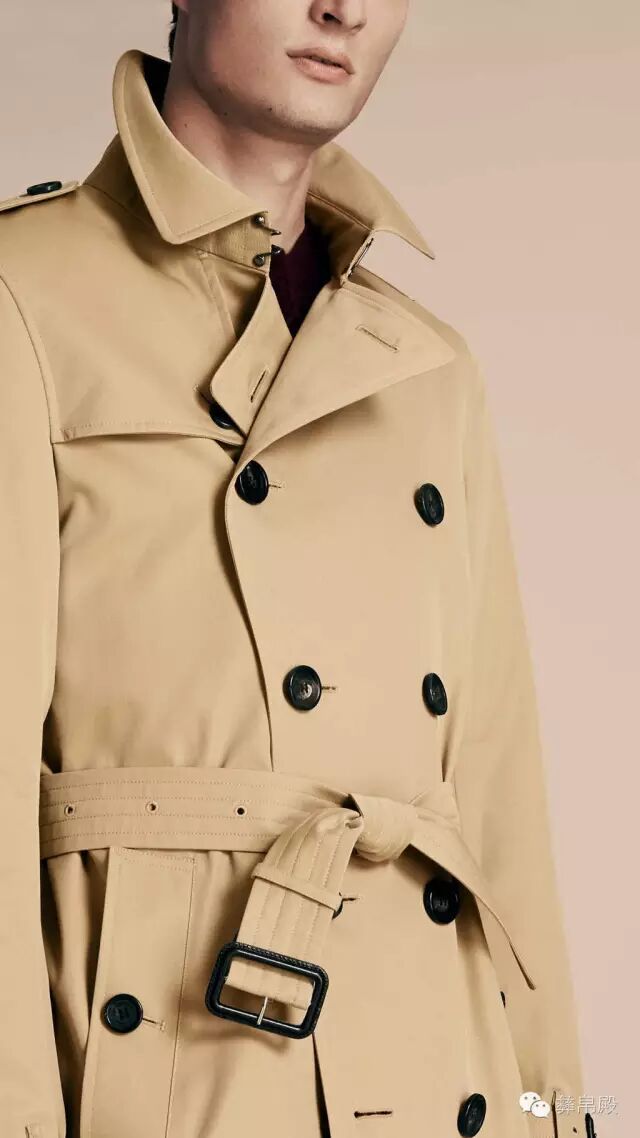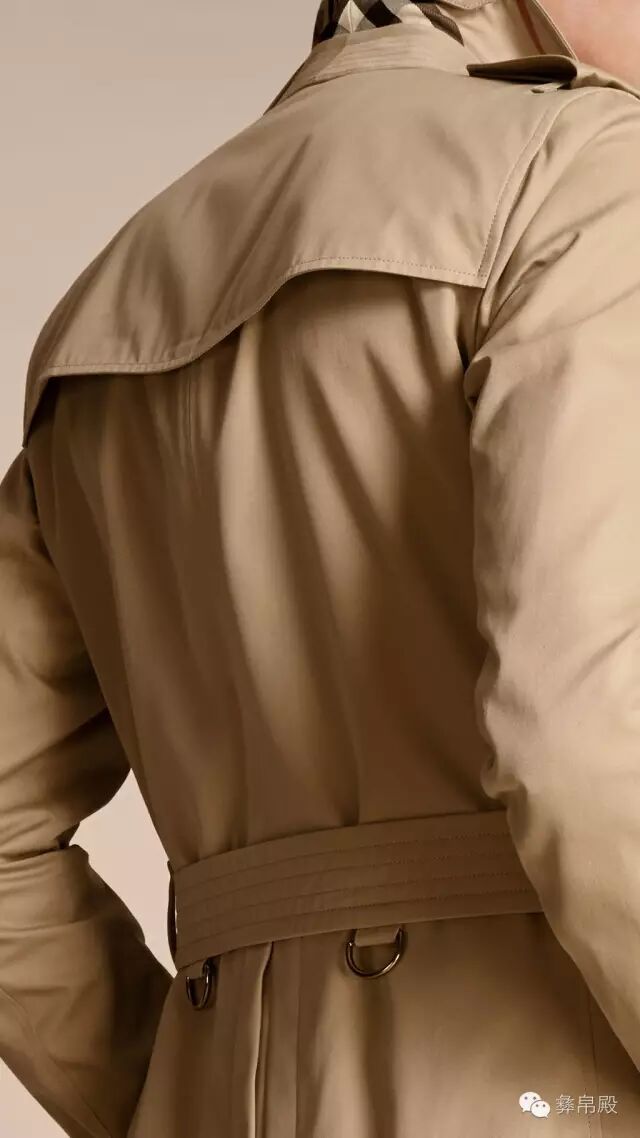 风衣臻选防雨棉质嘎巴甸(Gabardine)于英格兰精裁而成,该面料由Thomas Burberry于1879年独创发明。