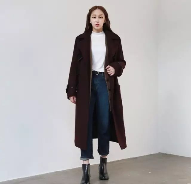 搭配大衣时,九分直筒阔腿裤和及踝靴也是很好的搭档,不仅显瘦而且显得有气质。这款深蓝色直筒阔腿裤搭配黑色及踝靴,卷起裤脚露出部分白嫩的脚踝,增添一点小性感~