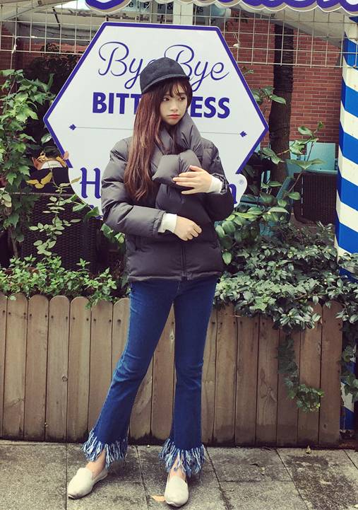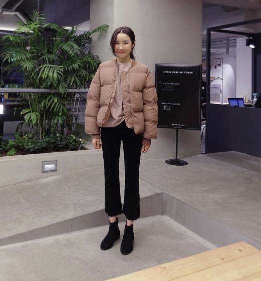 微喇形毛边阔腿裤也是今年大热的款,搭配短款修身羽绒服温婉优雅。鞋子选择小巧的尖头鞋,更增添成熟女人味!