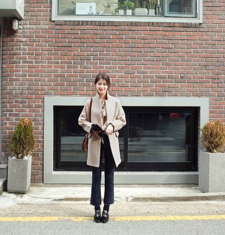 大衣和深色微喇裤搭配更能增添优雅知性的气质。这款米色大衣看起来质感很好,搭配黑色牛仔微喇裤、乐福鞋,上面配印花衬衫,知性温柔的轻熟女气质!