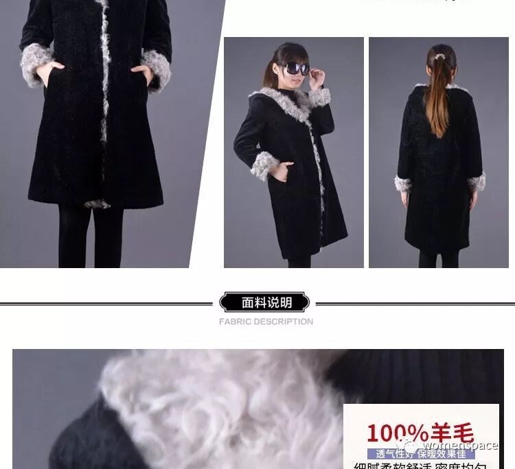 全来发女人空间:2017冬季新款连帽中长款羊剪绒大衣