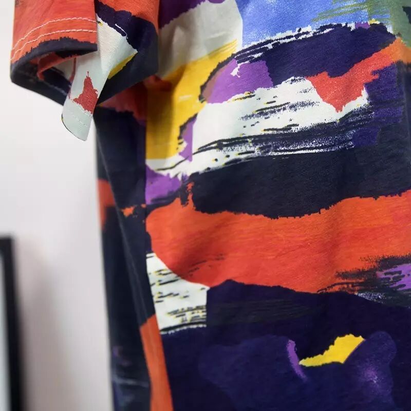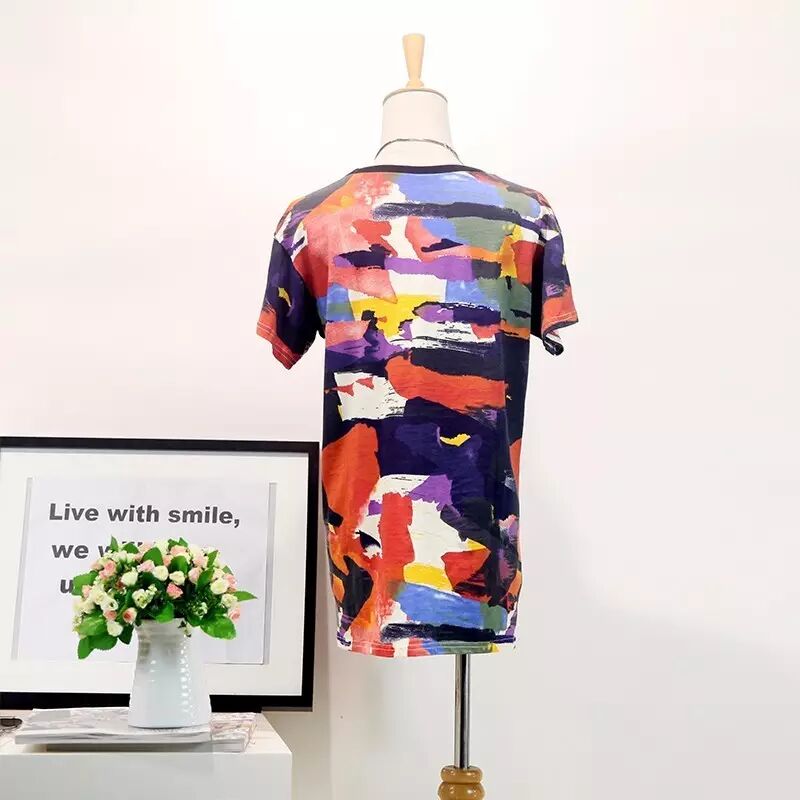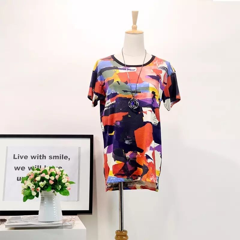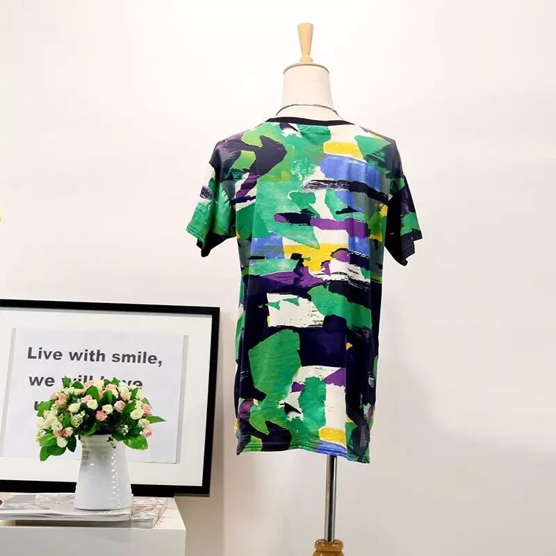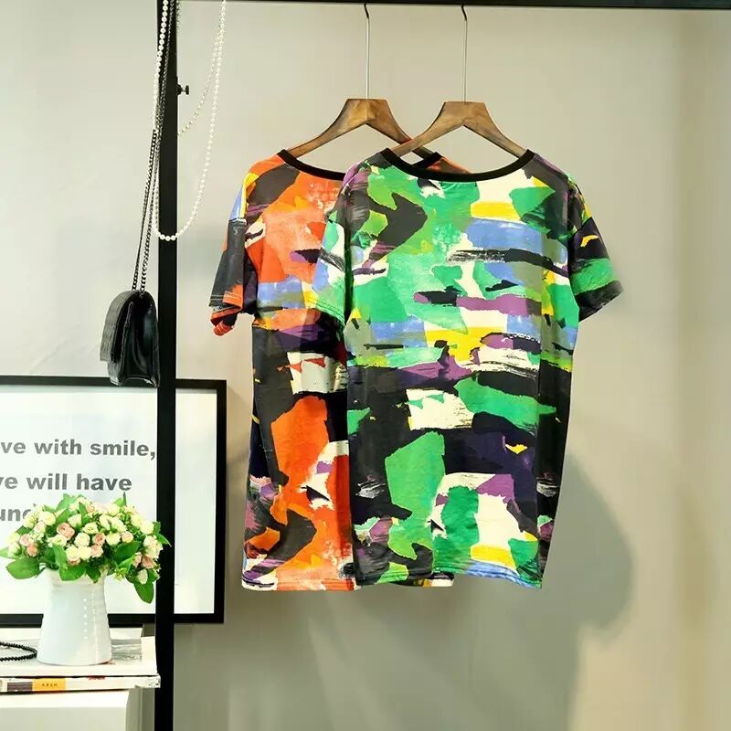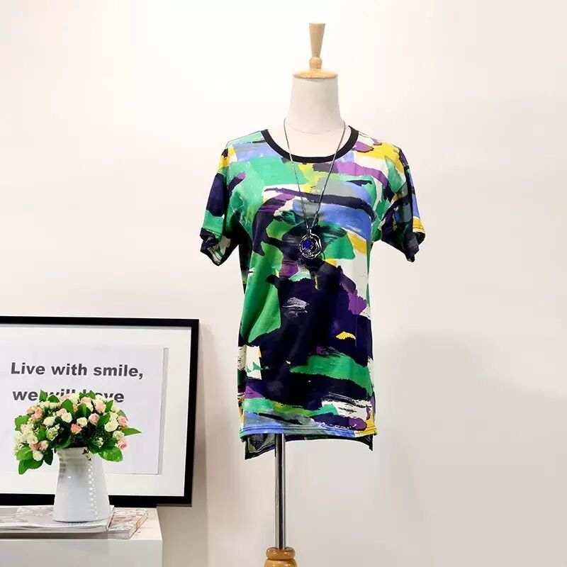 韩版中长款迷彩T恤女式圆领短袖T