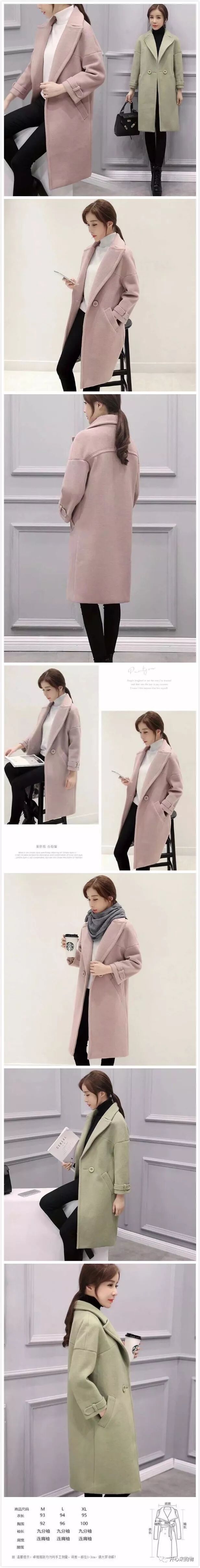 5931#新款韩版长款毛呢子大衣179 【颜色】粉色 豆绿色 【尺码】S-XL 【面料】毛呢