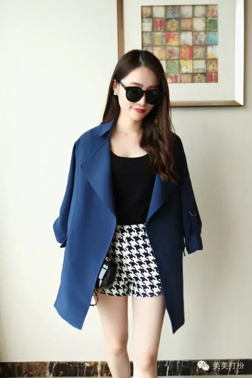 现在的气温可以搭配衬衣,再等一些,配长袖针织毛衣都是可以的