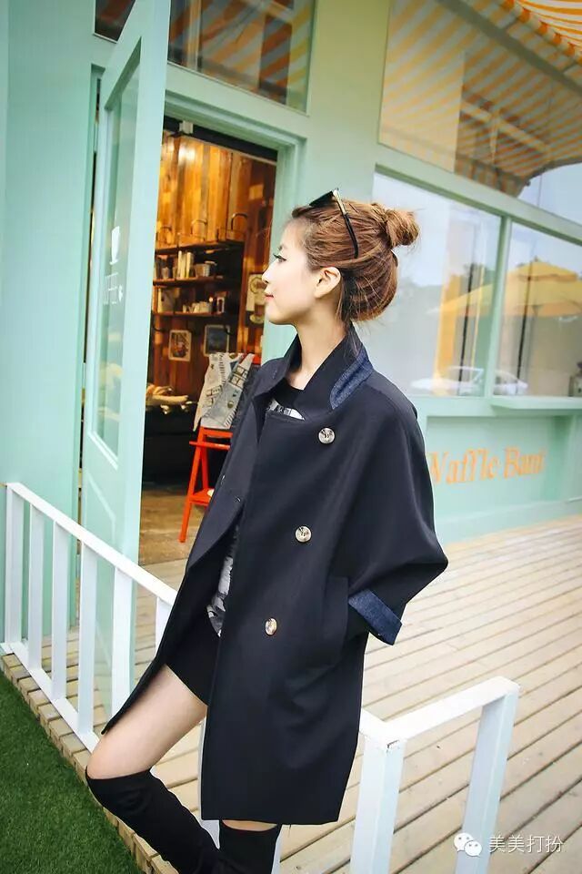 一款宽松舒适的茧型风衣外套, 这几年韩国都特别流行这种款式的大翻领风衣, 相对于修身的风衣这种款的休闲味道更强一些, 而且穿着也更为舒适一些,有点中性的小帅气感。