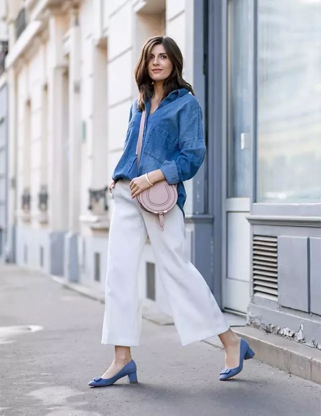 阔腿裤穿上休闲舒适,而且摩登感十足,无论是出街还是出席正式场合都十分合适。麂皮鞋是去年流行了一整年的单品,复古低调 ,也十分突显个性,用来搭配阔腿裤会让你尽显别样魅力。