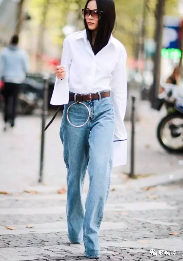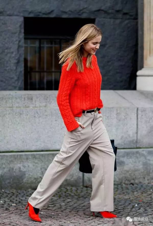 这样的feel达人们也都玩得乐此不疲,将长长的阔腿裤盖住脚面,搭配上高跟鞋,让整件阔腿裤都是你的腿,hold住你也会是“腿神”。