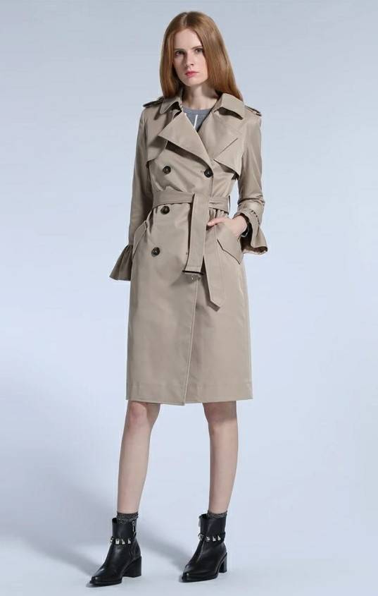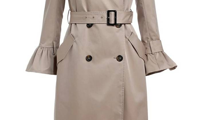 袖口变大,做出一些蝴蝶边褶皱,增加了风衣的趣味性,可爱又时尚。