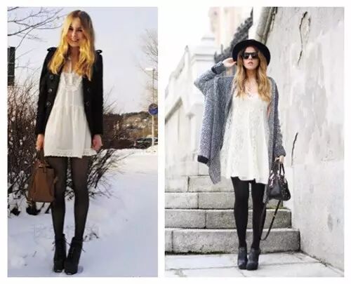 如果怕腿冷,就添双肉丝;怕腿粗,黑丝也不违和。