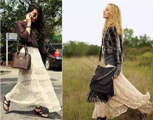 而蕾丝长裙可穿搭的季节就更长了……冬天穿个毛绒绒的短外套或长大衣都能穿出街拍范儿!