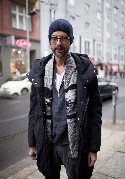 这款派克大衣的设计就是为了对抗这风雪气候。在很多男士的眼中西装套装与派克大衣是完全碰不到一块的,一个是休闲运动风,一个是正装。但在这位型男的搭配下,我们又再一次看到了奇迹。用一条灰色的针织围巾和一双户外短靴将两者帅气的融合在一起了。