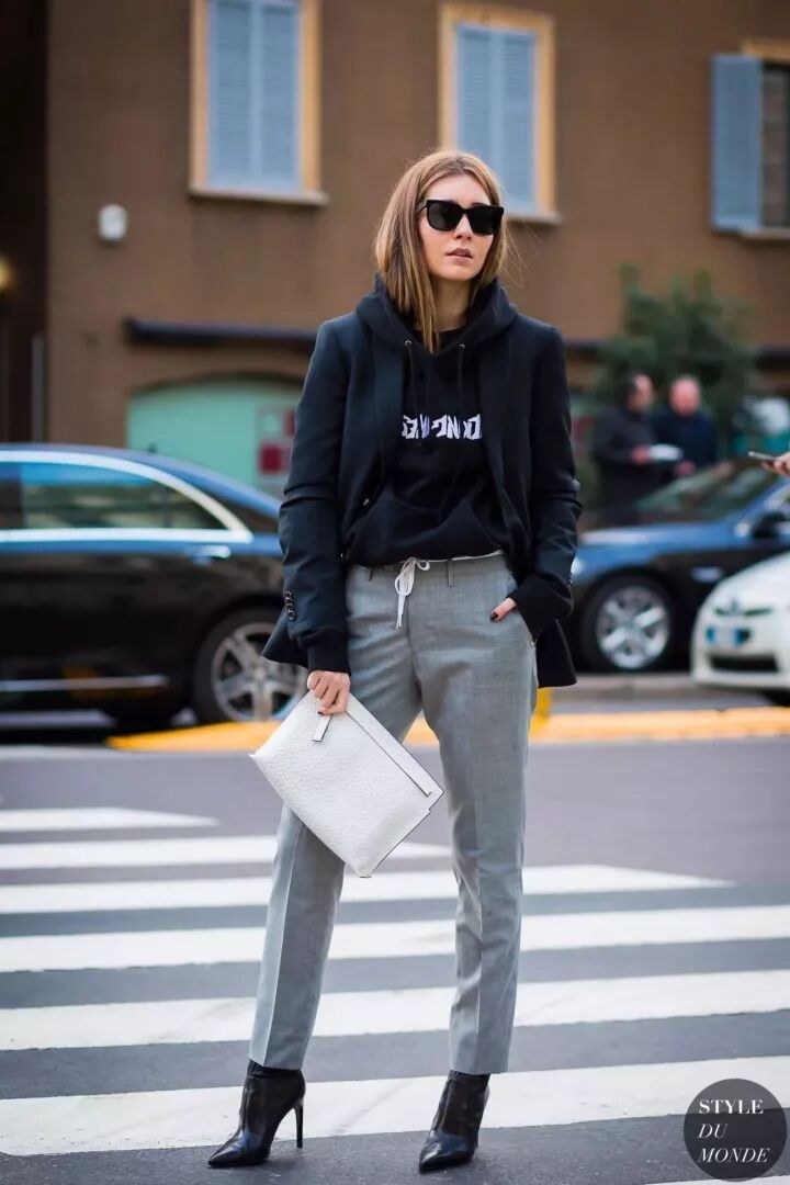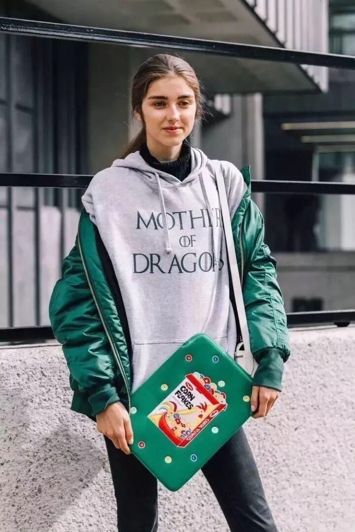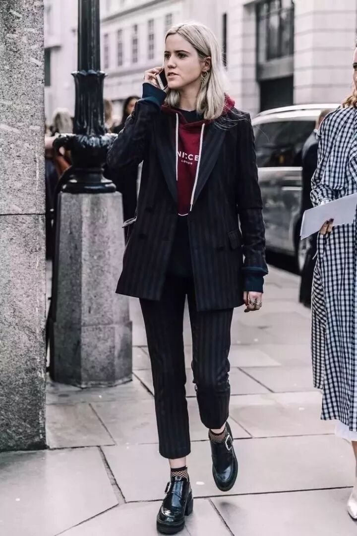 高领搭配卫衣,让你的卫衣没有校服感,也是非常棒的保暖技巧。外面套外套来穿也不会觉得臃肿。▼
