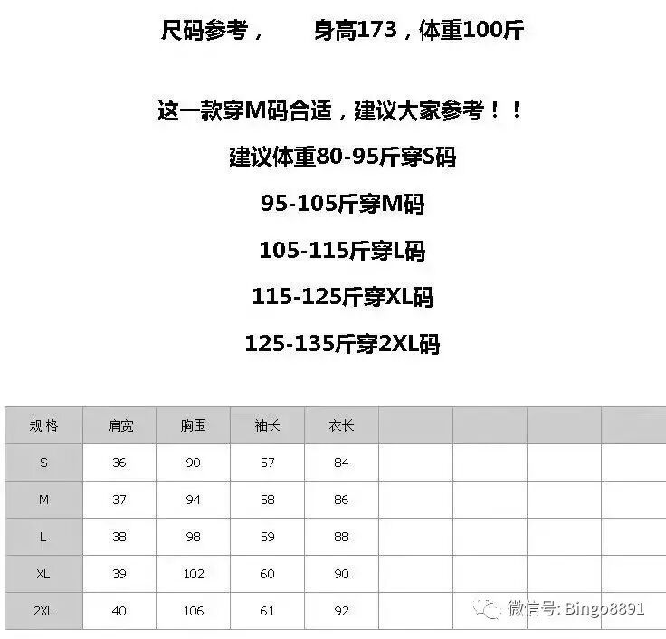 尺码表先给大家看下,身高173,体重100斤,穿M码适合建议大家参考!