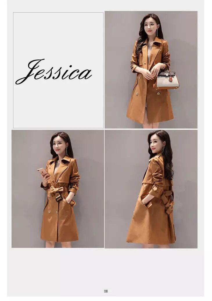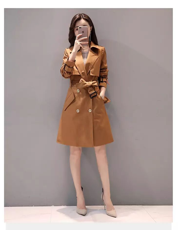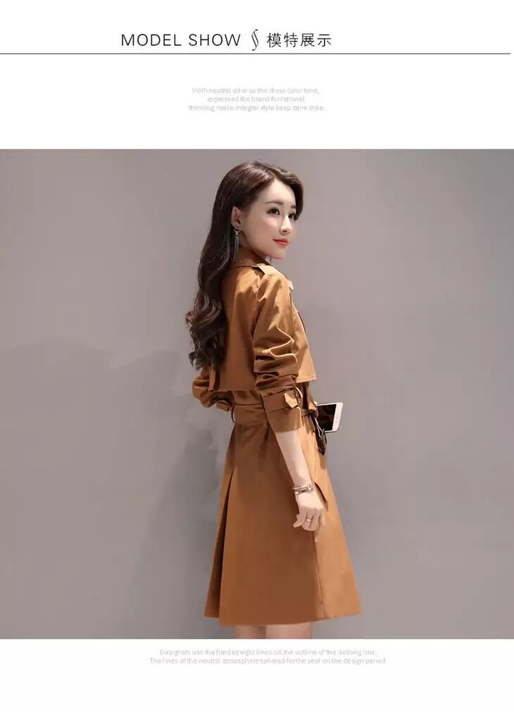 秋季双排扣英伦百搭长袖修身纽扣时尚显瘦风衣中长款纯色