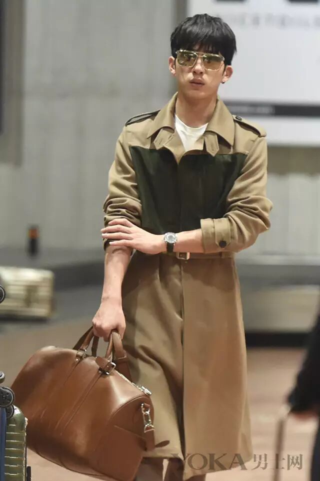 可以像井柏然这样在系好扣子以,系腰带。(一般风衣都是这样系腰带的,井柏然的这款风衣腰线稍稍往上)