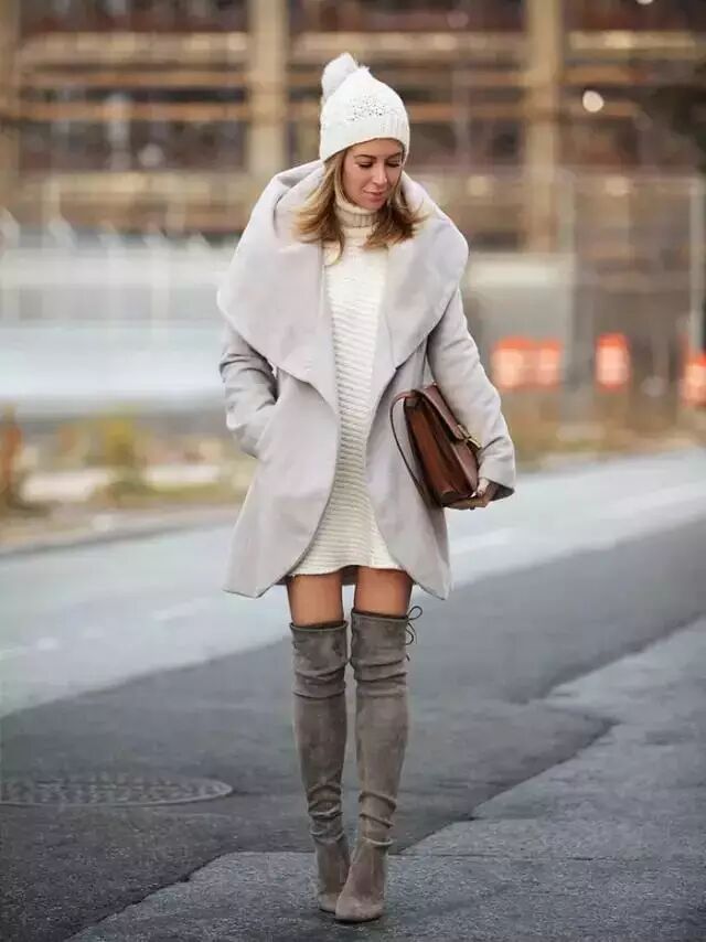 一件式毛衣+过膝长靴▼