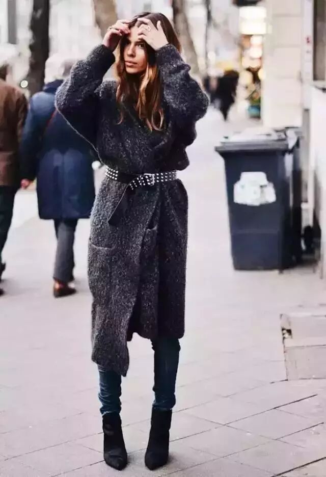 毛衣外套+宽腰带▼